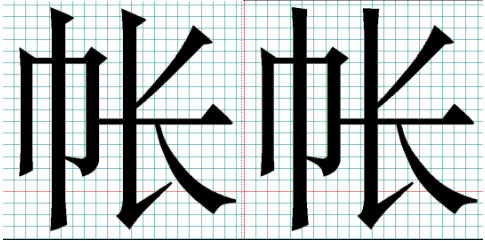 漢字“帳”的細微化變異處理:
