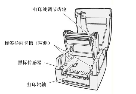 1.4 打印線調(diào)節(jié)齒輪/標(biāo)簽導(dǎo)向卡槽(兩側(cè))/黑標(biāo)傳感器/打印輥軸