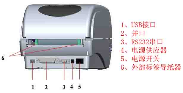 1.2 USB接口/并口/RS232串口/電源供應器/電源開關/外部標簽導紙器